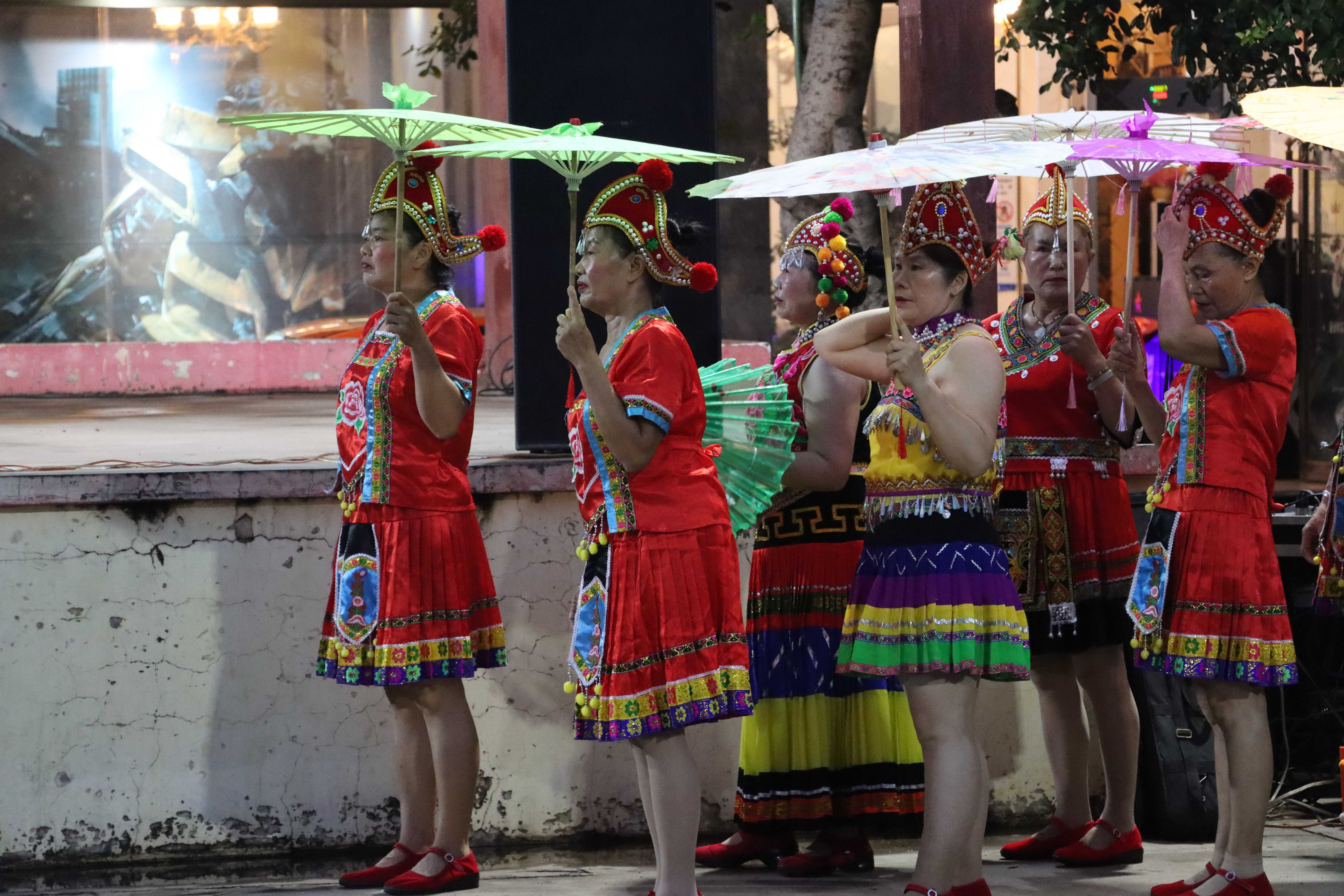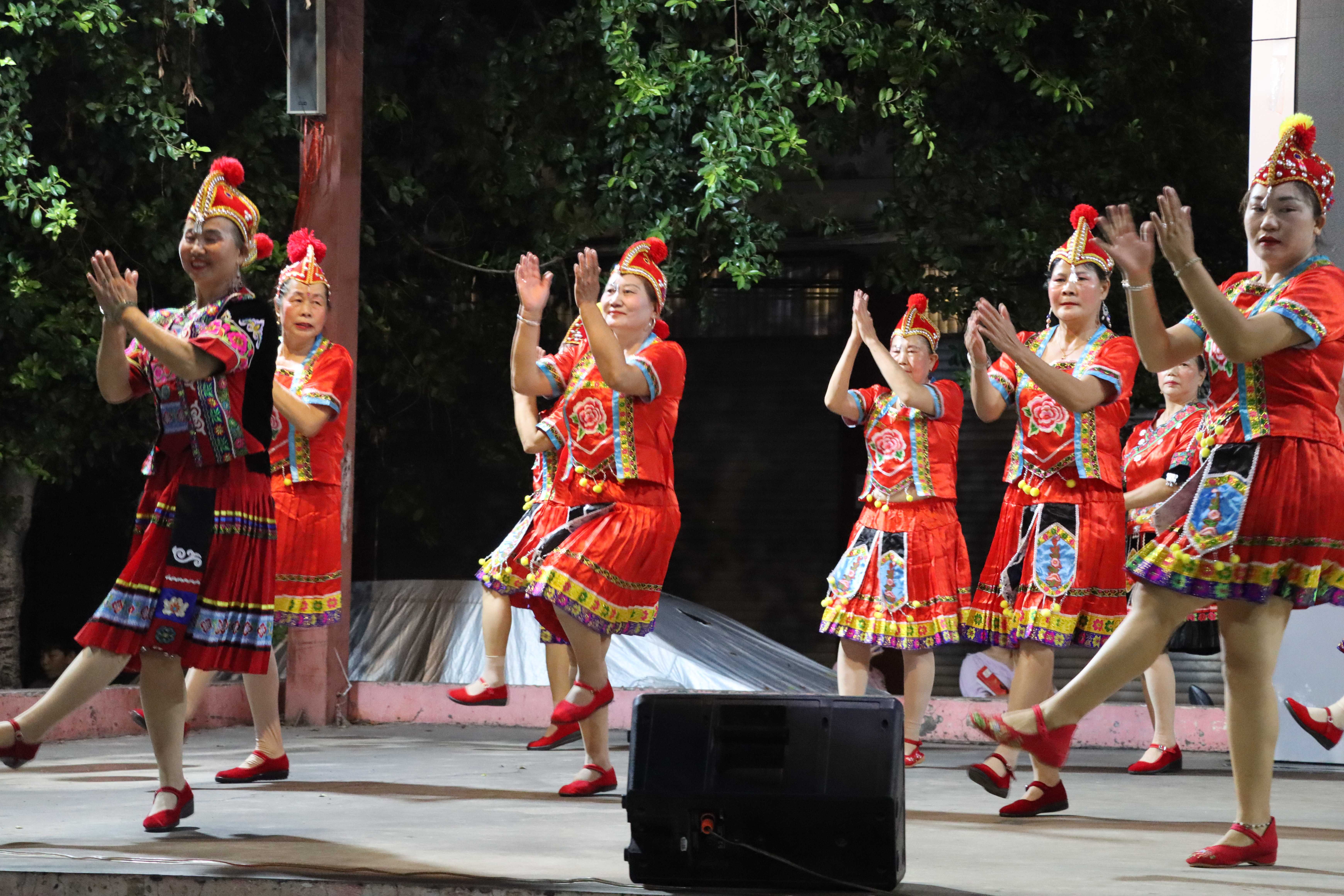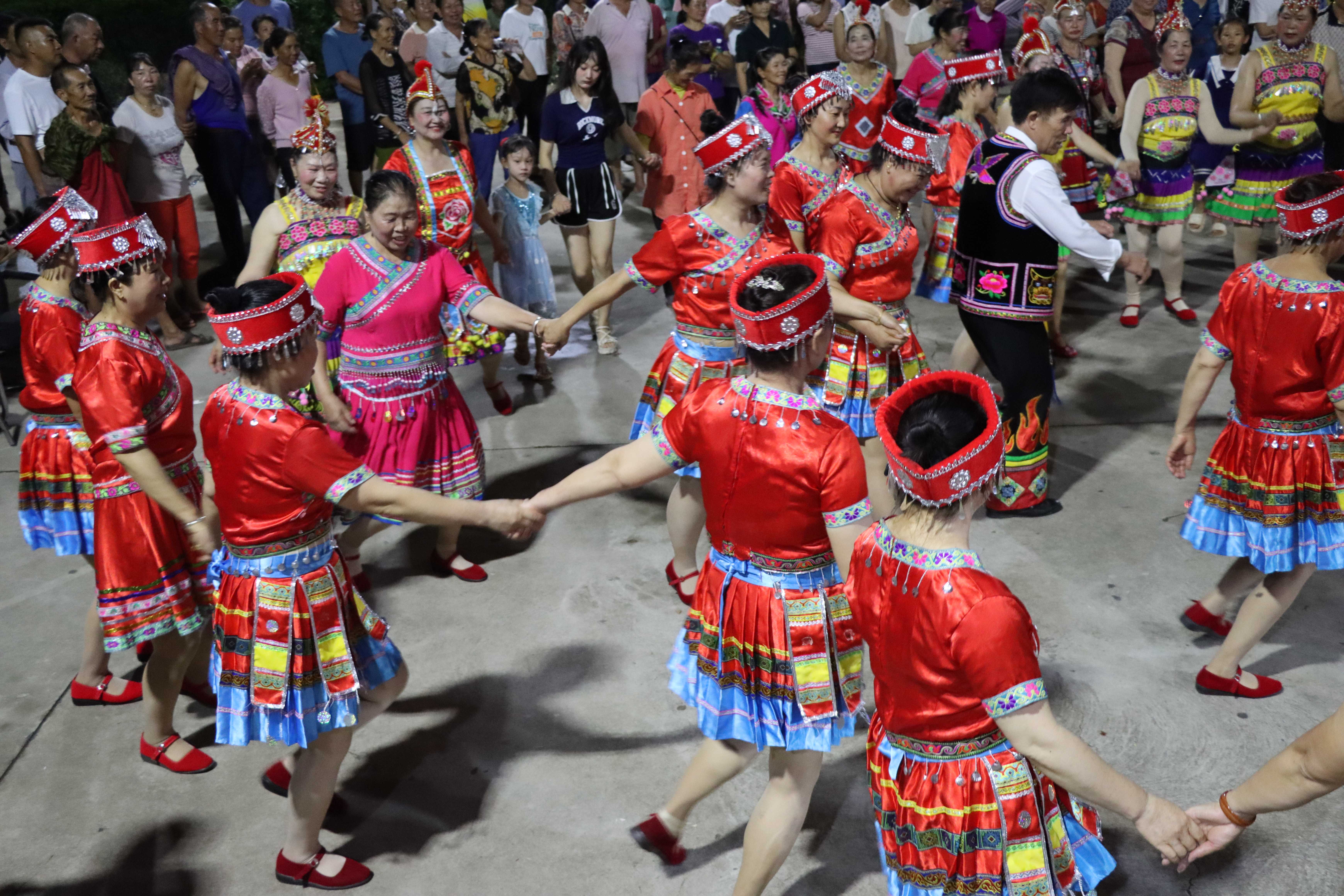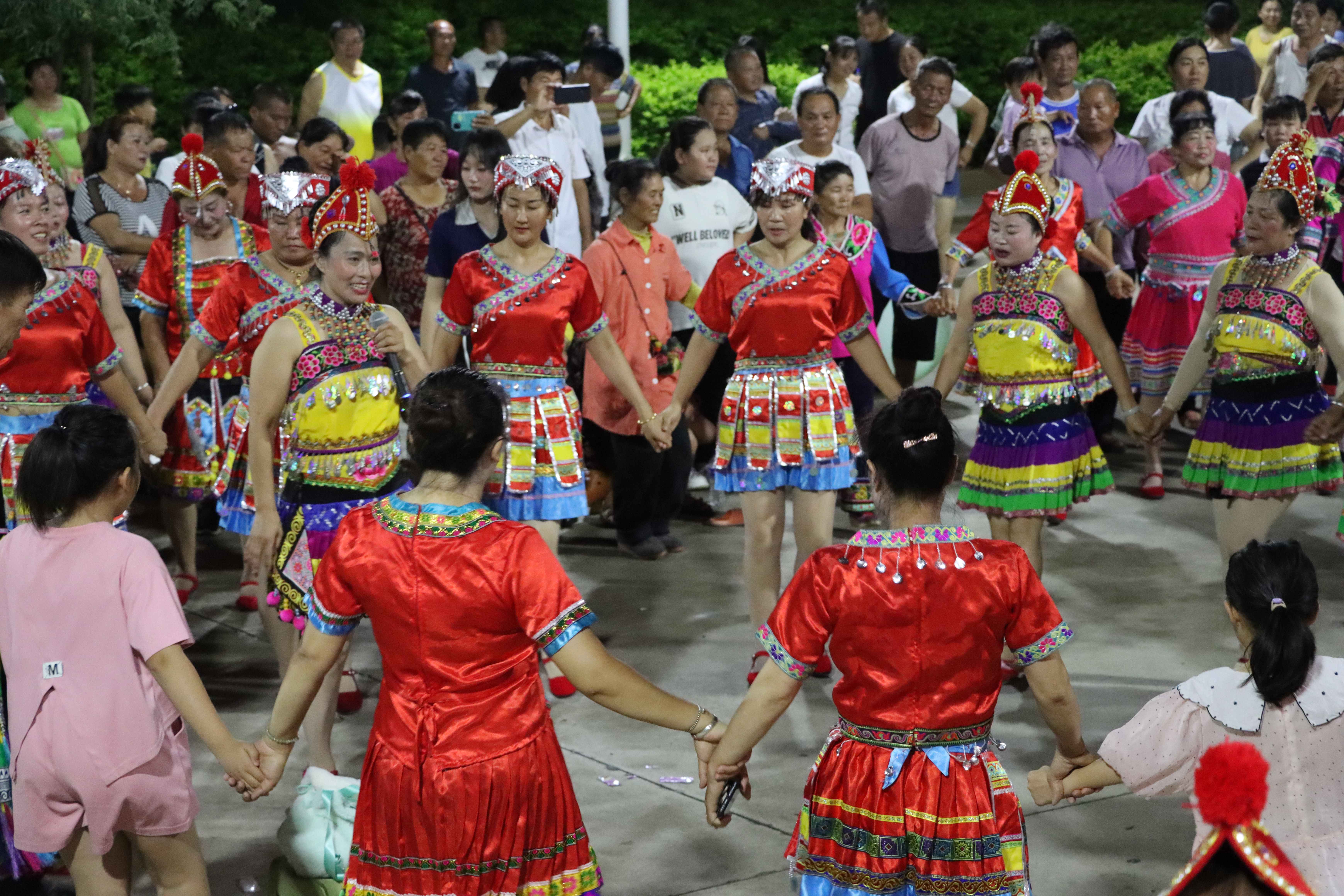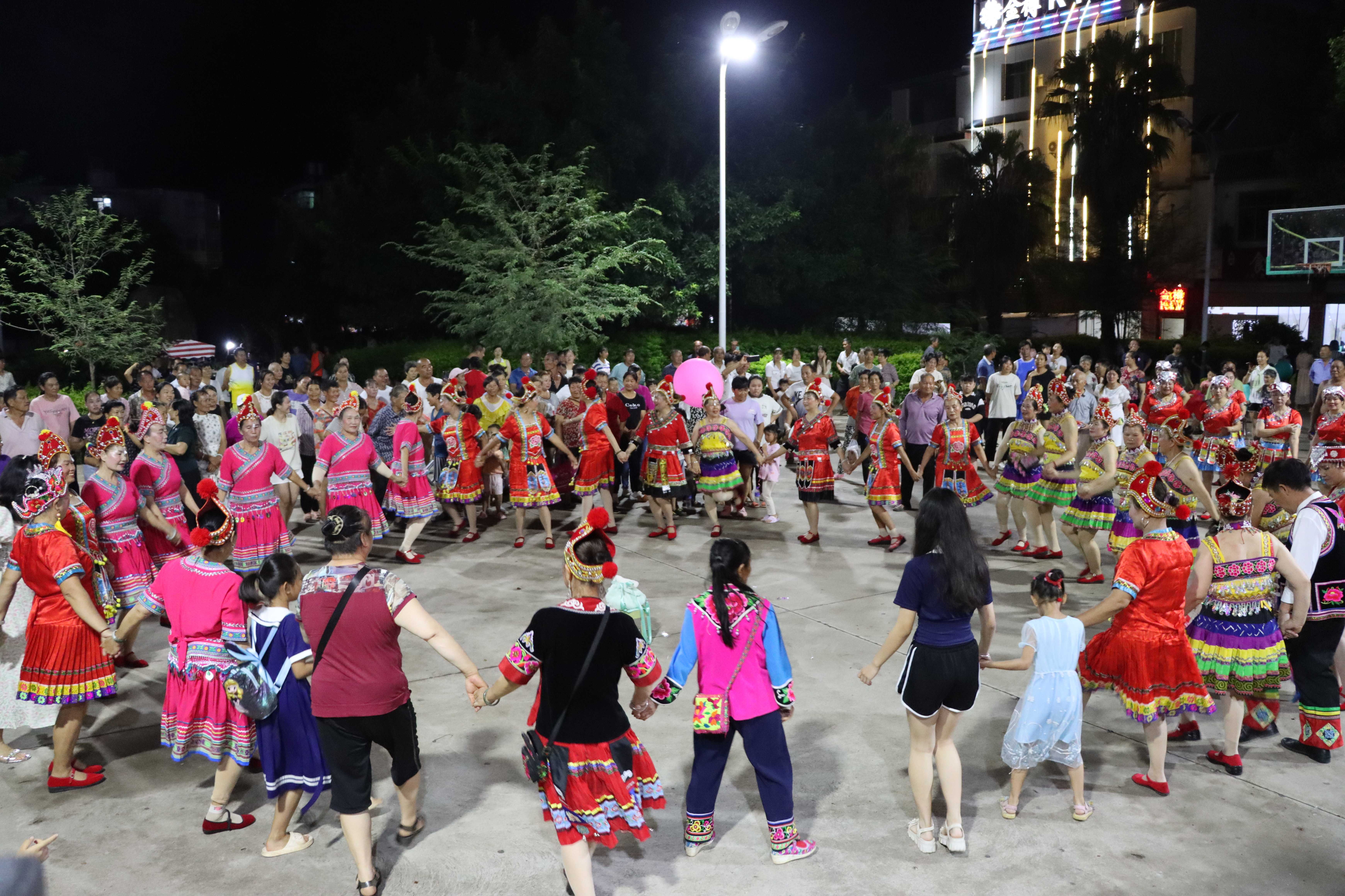 “又是一个把你双眼点燃的七月,又是一个把你心灵点燃的七月,骑上你的骏马穿上美丽的衣裳,小伙姑娘一起走进爱的火把节……”夜幕之下,熟悉旋律一响起,身体里沉睡的基因瞬间被唤醒,在黄瓜园集镇小广场上,随着音乐的节奏,大家手拉手,围成一个个圈,尽情地跳舞,尽情地欢呼。