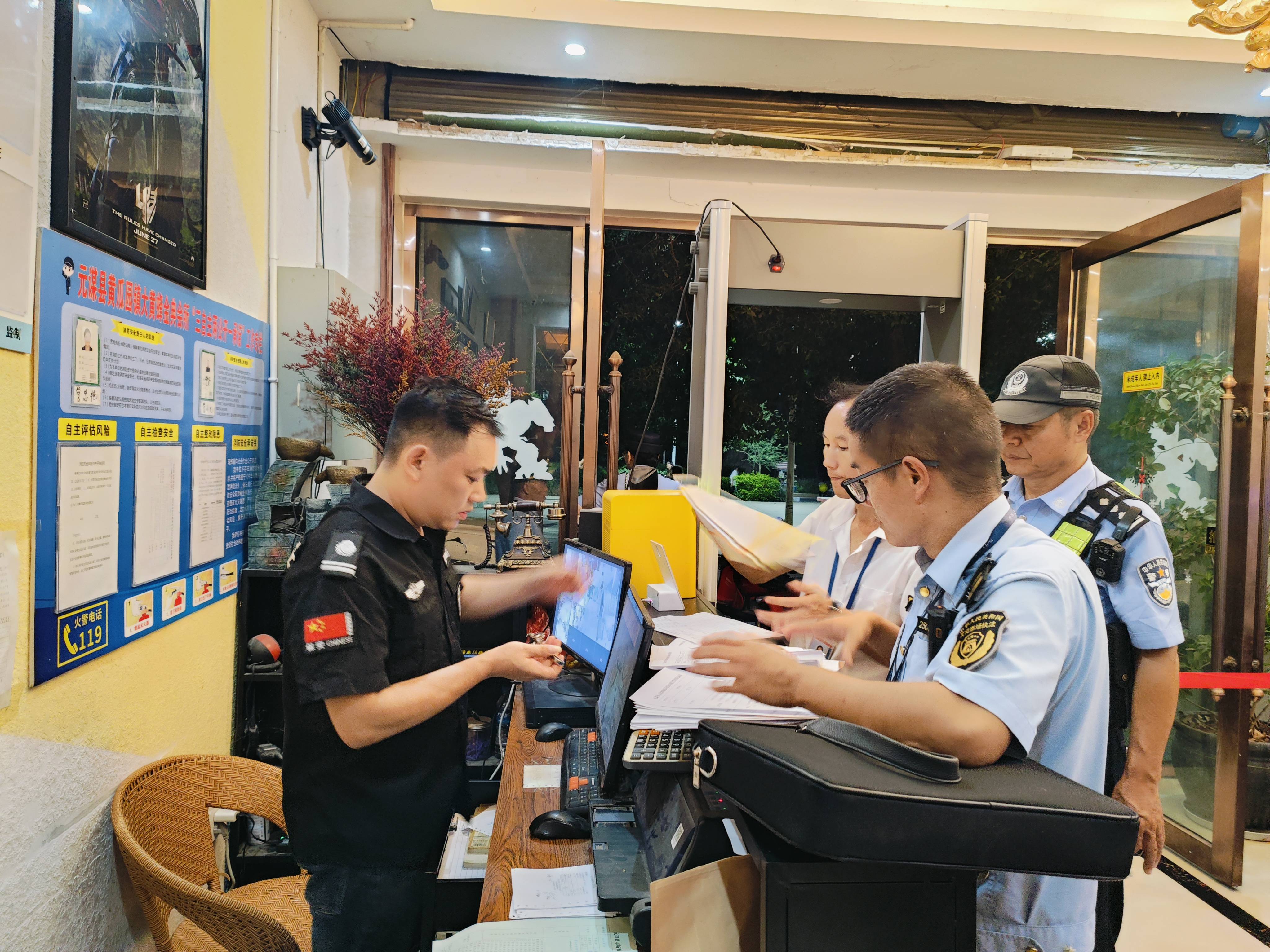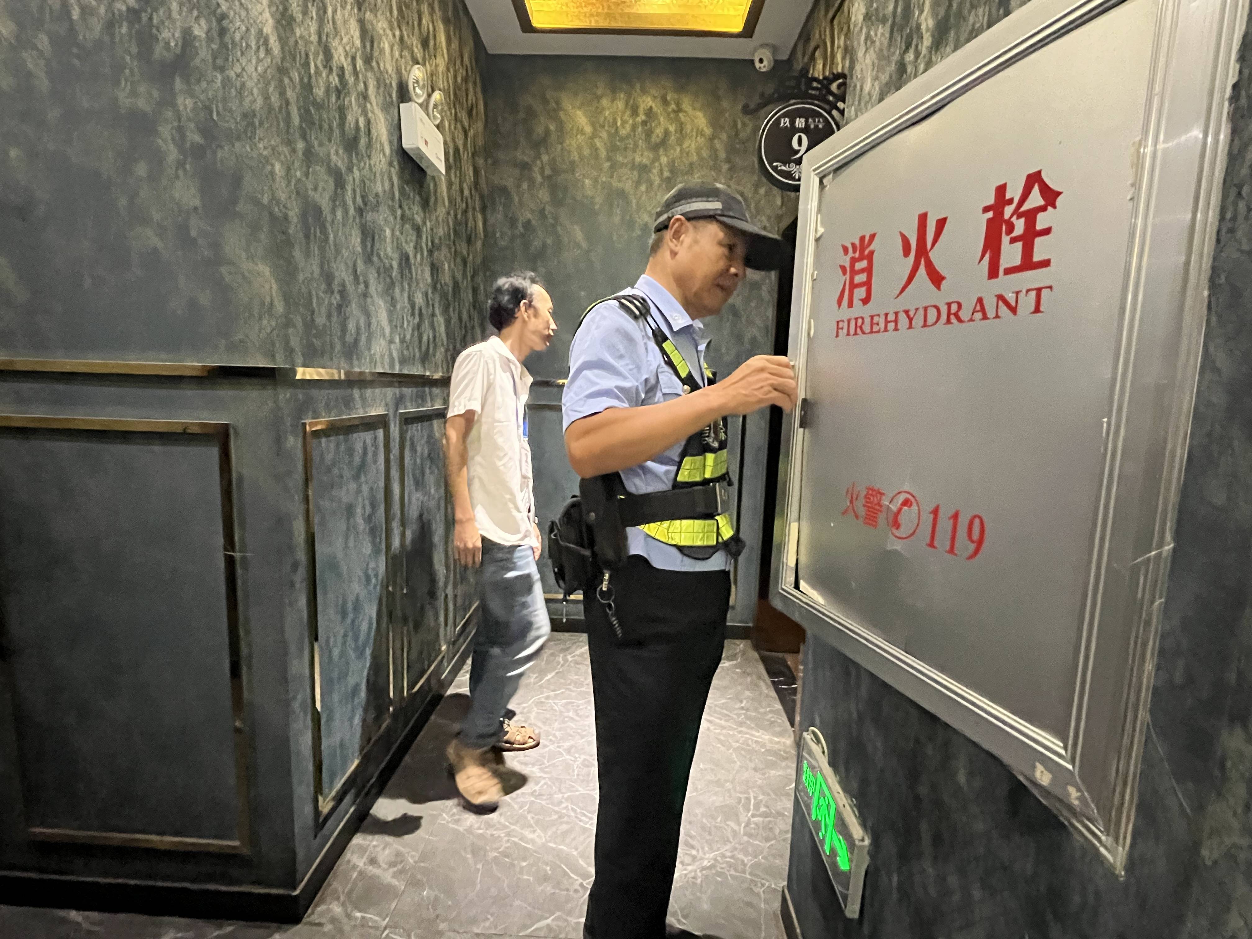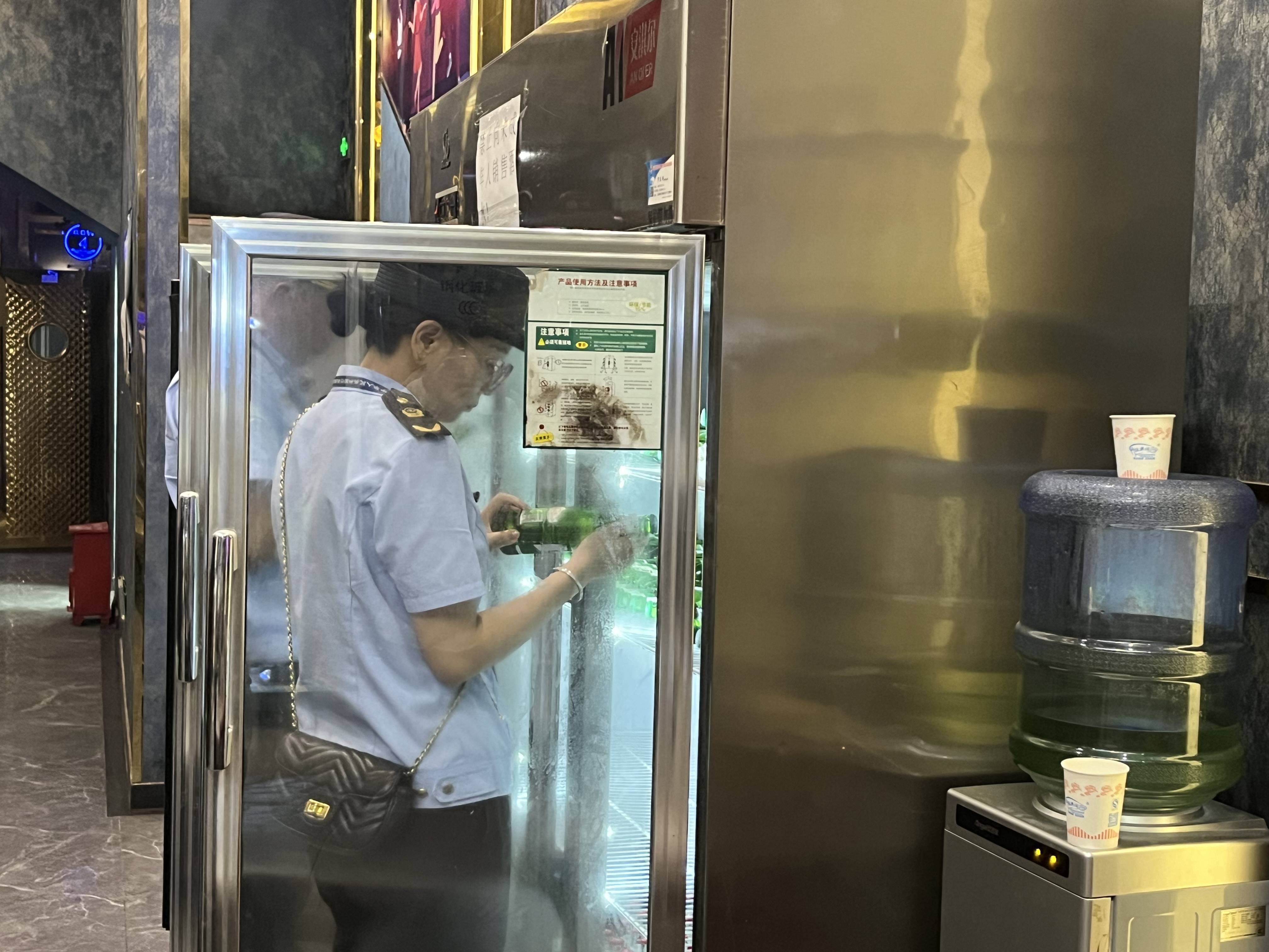 同时,检查组根据市场主体经营规定,以场所消防、治安状况、食品安全、是否接纳未成年人为重点,通过现场检查、查看台账、询问工作人员等方式,对辖区的网吧、KTV等娱乐场所进行全方位的检查。行动中,检查组工作人员重点检查是否按照规定核对、登记上网消费者的有效身份证件或者记录有关上网信息;歌舞娱乐场所歌曲点播系统是否与境外的曲库联接;娱乐场所是否按照《娱乐场所管理条例》规定悬挂警示标志、未成年人禁入或者限入标志、举报电话等。同时,还重点检查疏散通道、安全出口是否通畅;场所消防设施是否正常运行以及场所是否使用过期食品,是否明码标价等。
