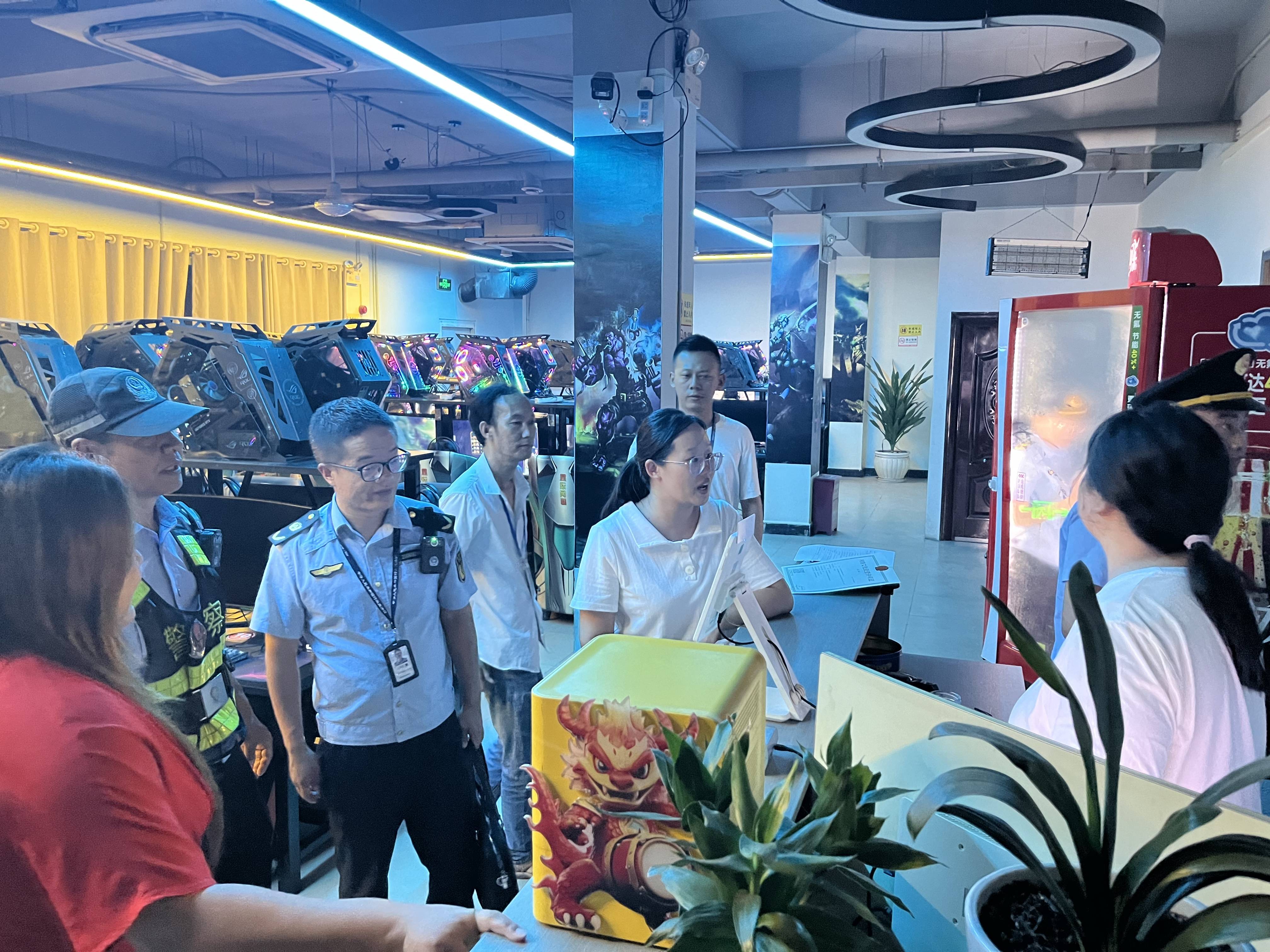 为进一步强化文化市场监督管理以及未成年人保护工作,营造辖区内安全、健康的娱乐文化环境。近日,县文旅执法大队联合黄瓜园镇文化站、宣传办、派出所、市监所等相关站所组成联合检查组,针对校园周边文具店、快递网点、打字复印店、超市等经营场所,辖区内网吧、KTV等娱乐场所开展专项检查,全力护航开学季。