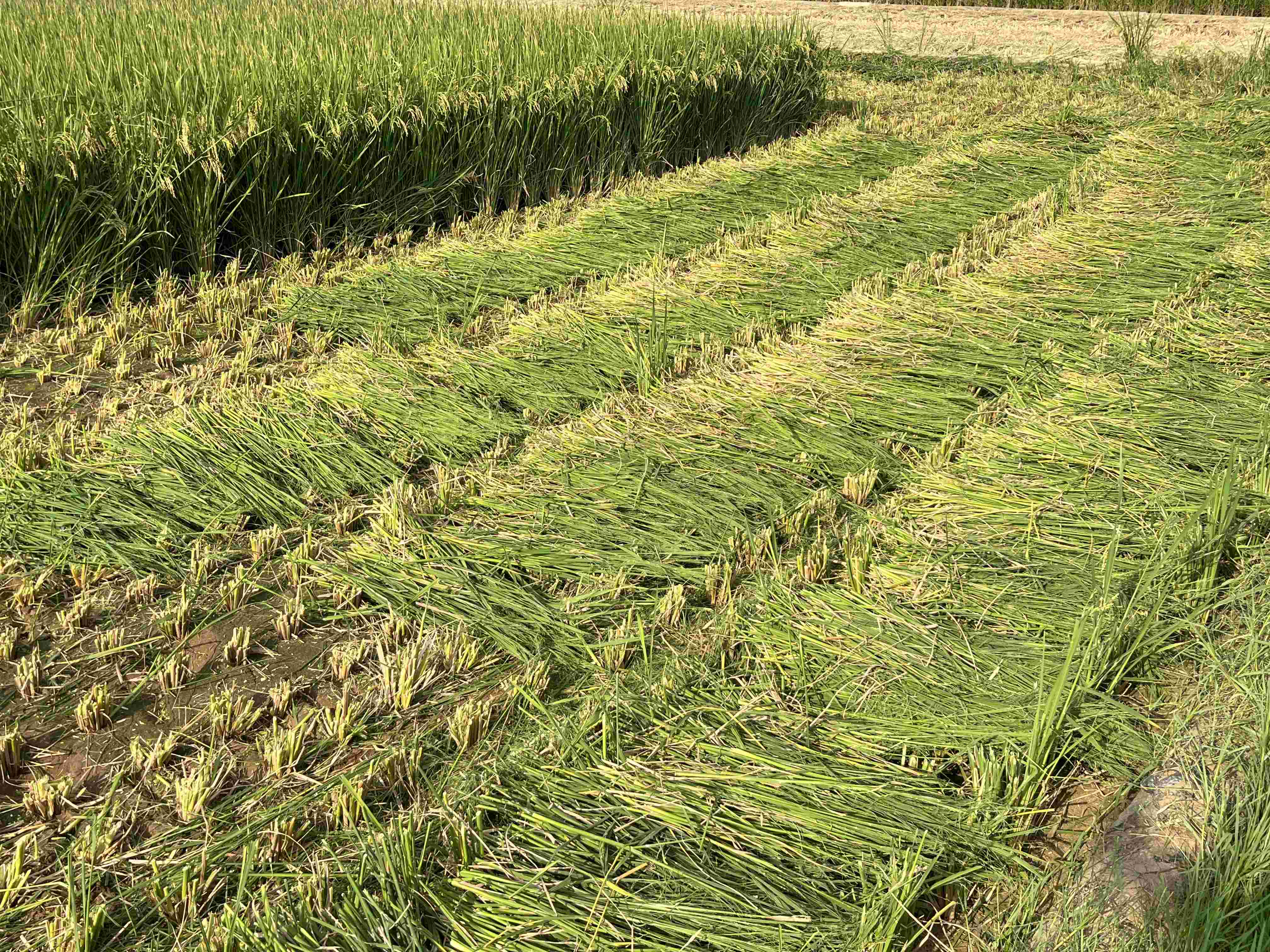 在收割完的稻田上,还有这样一幅“格格不入”的景象——农户背着打草机正在将谷杆打掉。难道收完稻谷的稻田不需要“休息休息”,马上还要种下新的作物?