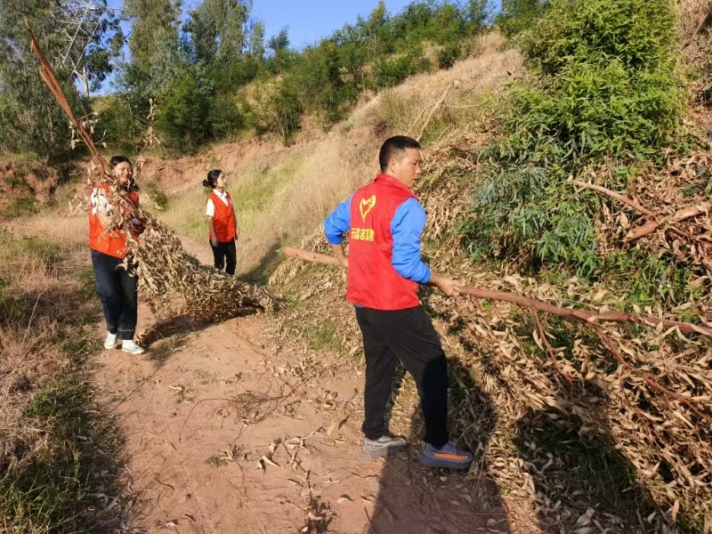 重温革命故事后,党员同志们一起穿上志愿服对遗址周边的环境卫生进行整治,他们手拿垃圾袋,仔细清理红色遗址周边的废纸、白色垃圾、枯枝杂草等杂物。在活动中,党员同志们不辞辛劳,干得热火朝天,一个个红马甲仿佛一簇簇火苗,聚在一起,表示着党员志愿者致力于传承革命精神,经过2个小时的清洁行动,遗址周边环境焕然一新。