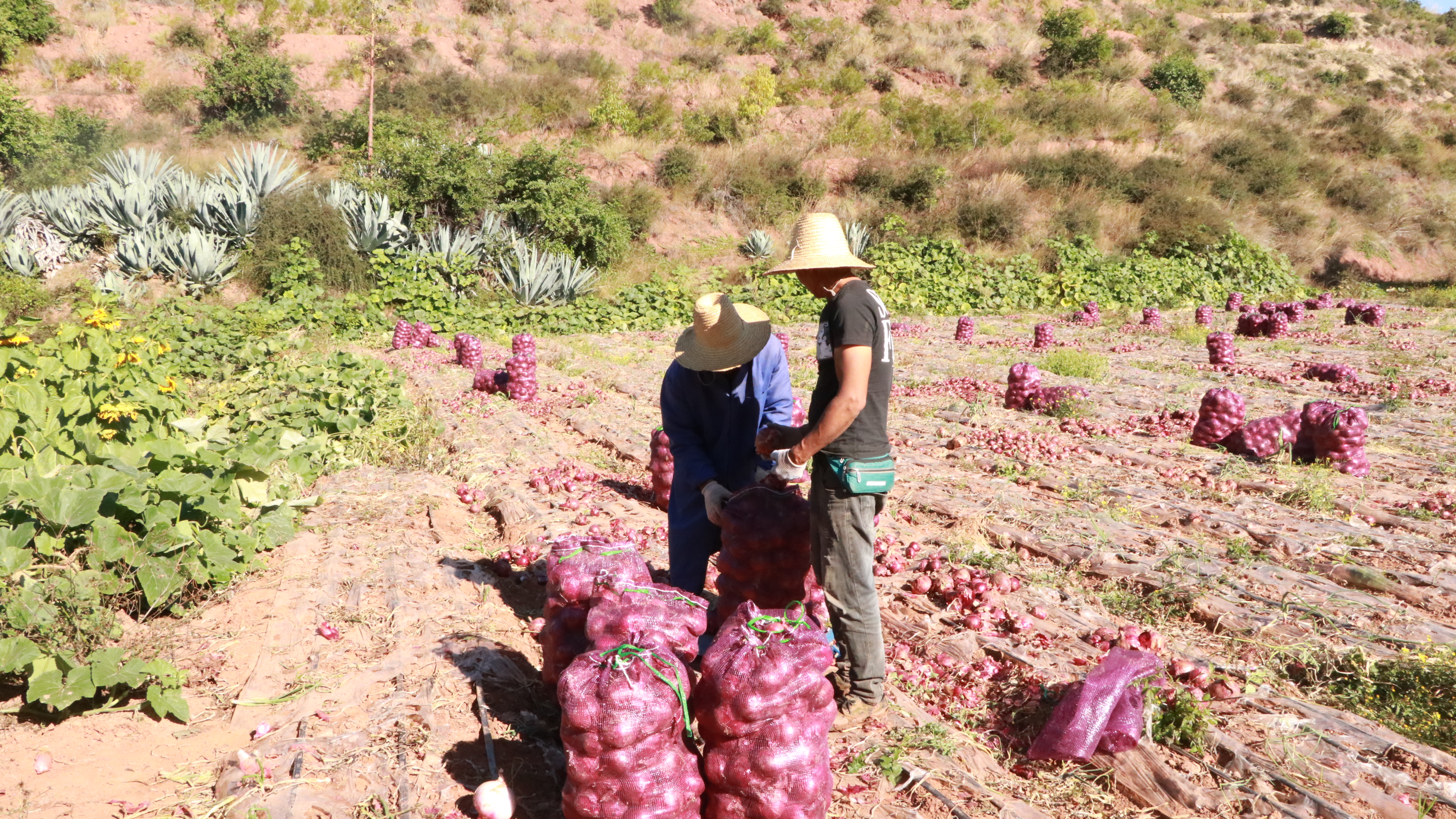 朱子金作为洋葱种植大户,从2019年开始专注于发展山区蔬菜种植,经过多年时间对一百七十六个品种进行试种,才成功筛选出了反季洋葱品种,由于种植经验丰富,加上管理精细,采用节水滴灌,这些洋葱长势喜人、产量可观,还没采收就已经被收购商提前预订了。洋葱良好的生长状态和广阔的销售市场,为后续的产业规模壮大打下坚实的基础,也让农户们看到了增收的希望。