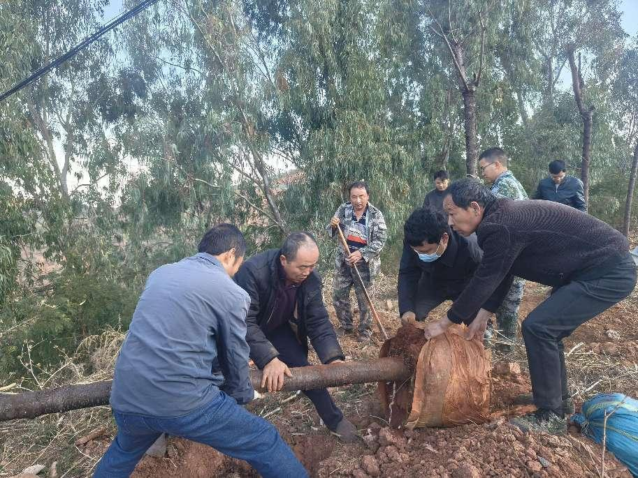 当天上午,羊街镇人大代表们来到绿化植树点,手中紧握树苗与铁锹,共同投入这场富有意义的植树活动中。大家按照指定区域,划分成种植小组,迅速行动起来,挥锹填土、扶植苗木、提水灌溉、踩土固苗……各个环节分工明确、配合默契、组织有序,现场一片热火朝天的劳动景象。在大家的共同努力下,100多颗樱花树苗扎根土地,迎风挺立,为羊街镇增添了勃勃生机。