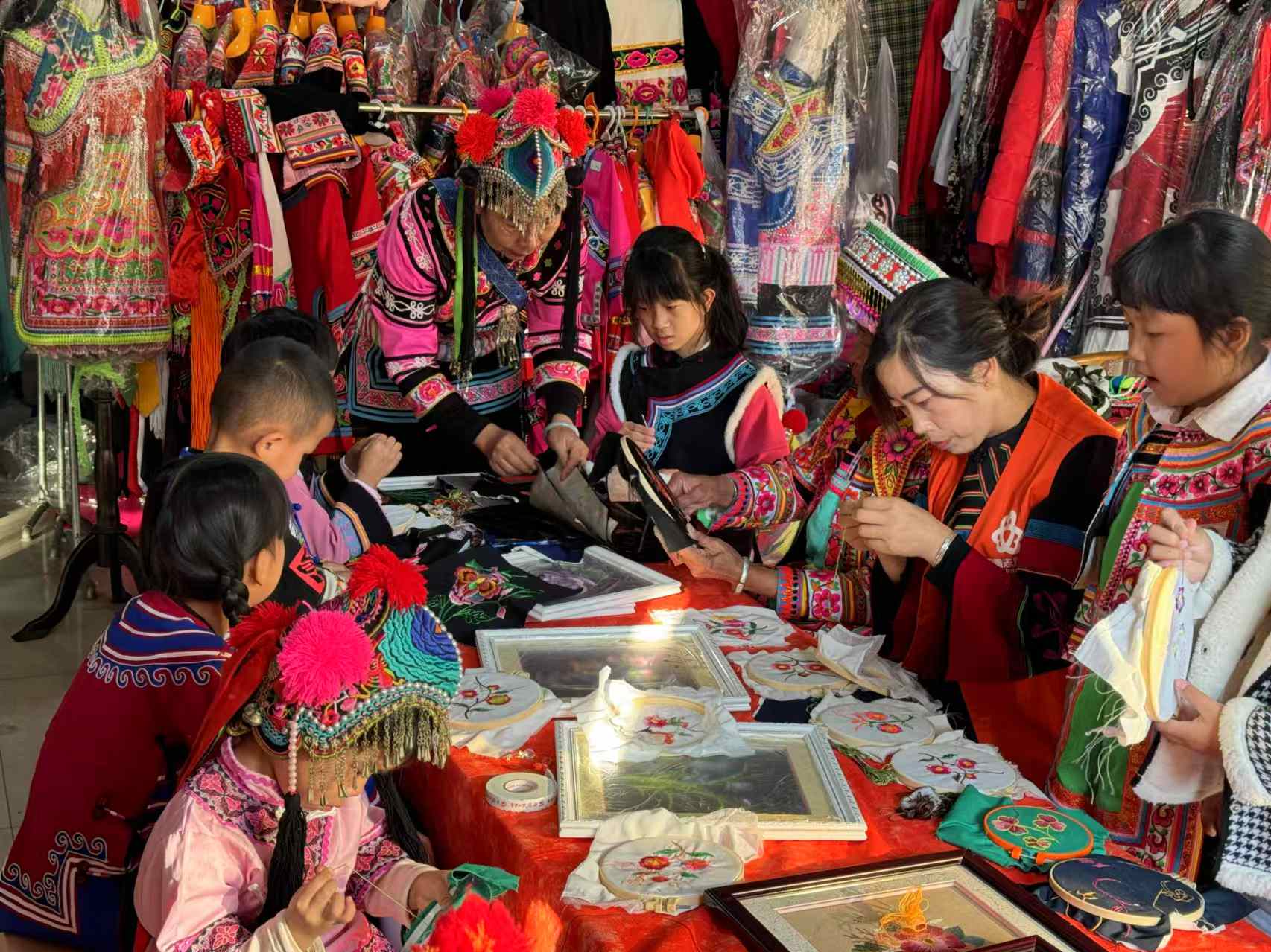 彝族刺绣教学现场,李贵琼老师深入浅出地讲解凉山彝绣文化史,老人们和小朋友们听得津津有味。随后,李老师亲自示范,教授刺绣技艺。大家纷纷拿起针线,尝试创作,在一针一线中传承非遗文化。