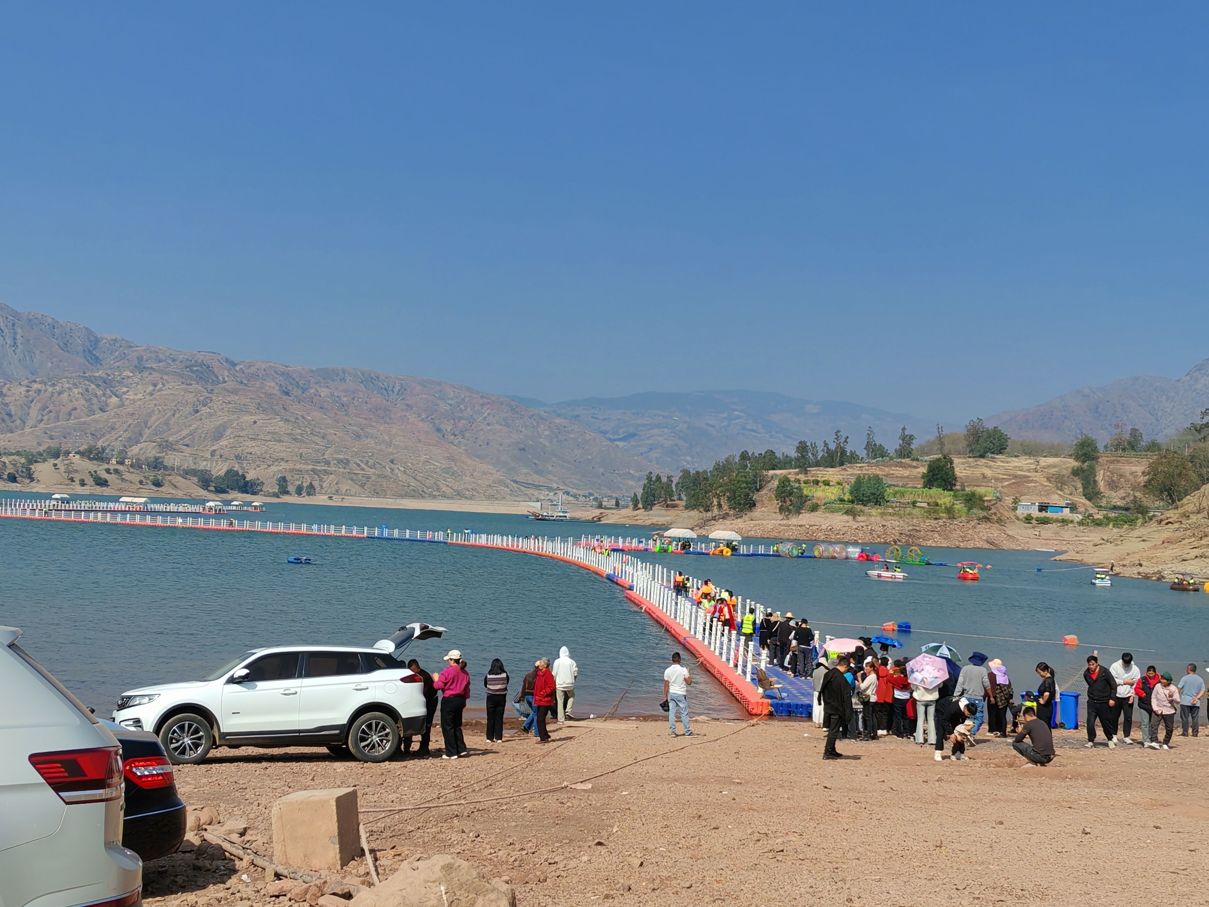 游客漫步在金沙湖边,感受高峡出平湖的壮丽,乘坐在游船上,清风徐来,水波不兴,碧绿的江水仿佛一面镜子,映衬着蓝天白云。在红军长征元谋纪念馆,重温那一段艰苦卓绝的历史。在诗歌小镇上,体验远离城市喧嚣的宁静,品尝一碗非遗凉粉,一个甜蜜的红饼,体验各种游乐项目。在启宪和美乡村,与家人一起露营、游玩。