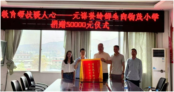 捐赠仪式上,物茂乡乡长周飞对芸岭鲜生的善举表达了诚挚感谢:“教育是乡村振兴的基石,感谢芸岭鲜生对物茂教育事业的关注与支持,这份爱心不仅温暖了校园,更为孩子们点亮了希望。”仪式现场,周乡长代表学校向企业颁发锦旗,以表谢意。物茂小学校长也郑重承诺,将严格规范使用捐赠资金,确保每一分钱都用在刀刃上,切实惠及全体师生。