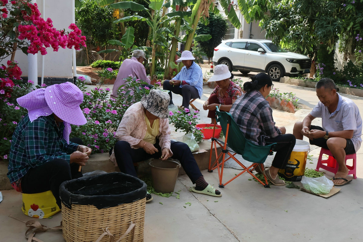 务工车间位于“中介”起常琼家小院和紧邻的江头村活动场所,用工最多时,老人们坐满她家小院和活动长廊。元马镇金龙社区以群众就业需求为切入点,通过培养移民杞晓燕等致富带头人、挖掘起常琼等辖区熟悉基地情况且热心肠的“中介”、招“小商”设车间工坊、盘活村组闲置空间等方式建成220平方米“家门口的务工车间”,与劳务公司、周边基地精准对接,合作设置毛豆剥壳、韭菜分拣、鲜花包装、葡萄分拣等适合老年人的“零门槛”岗位。在管理机制上,采用弹性工作制度与计件薪酬相结合的模式,每天迎来的70多位“银发上班族”中,还有部分留守妇女,这个打破年龄限制的零工服务驿站,让搬迁安置点群众真正实现了“出家门、进厂门”。