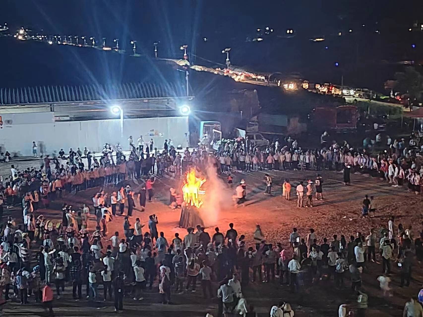 在篝火晚会上,身穿节日盛装的各族群众与远道而来的宾客们欢聚一堂,围着熊熊燃烧的篝火欢快起舞,用最热情的方式庆祝着彝族人民盛大节日的到来。