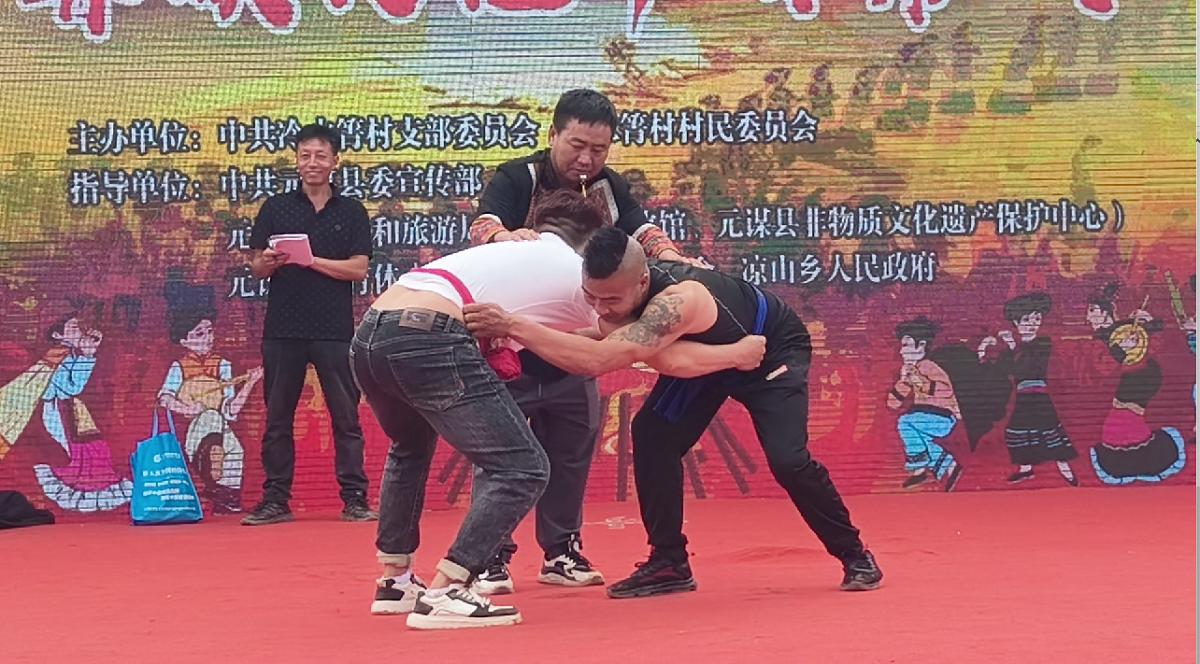 一方水土孕育一方特色,凉山乡冷水箐村委会火把彝村的火把节已传承了300多年的历史。每年火把节的摔跤现场,都会吸引众多彝族小伙、姑娘前来参加比赛,因为民族血脉中的冲劲,他们从“看比赛”“自己练”到成“摔跤王”,通过努力获得美誉,得到别人的称赞和尊敬,不少的“摔跤王”因此走出了小山乡,登上了更大的舞台。