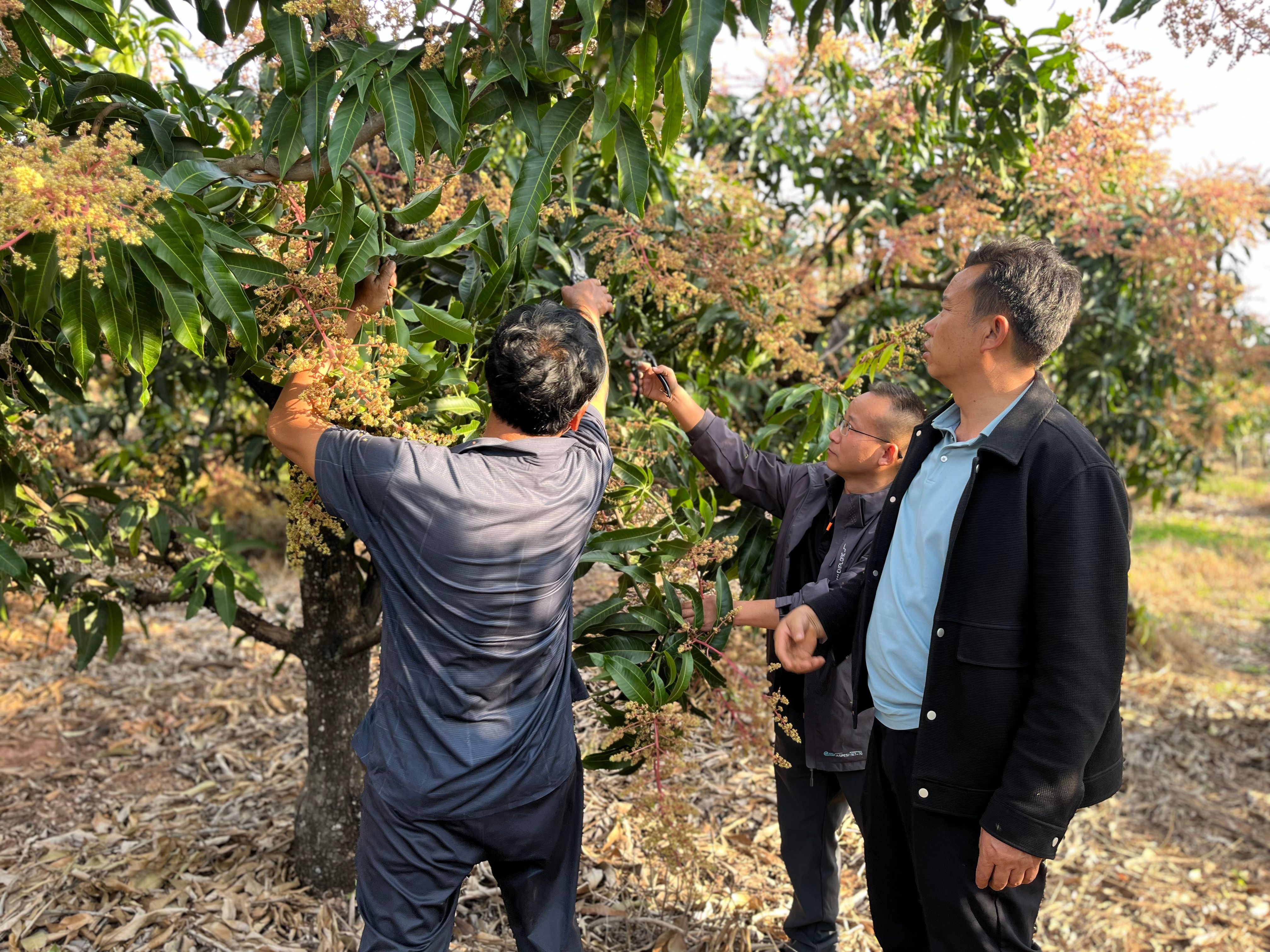 为提升芒果种植管理水平,点连村特聘请本村各村小组资深芒果种植户担任本土专家,与镇上的5名农技人员共同为果农提供技术指导。