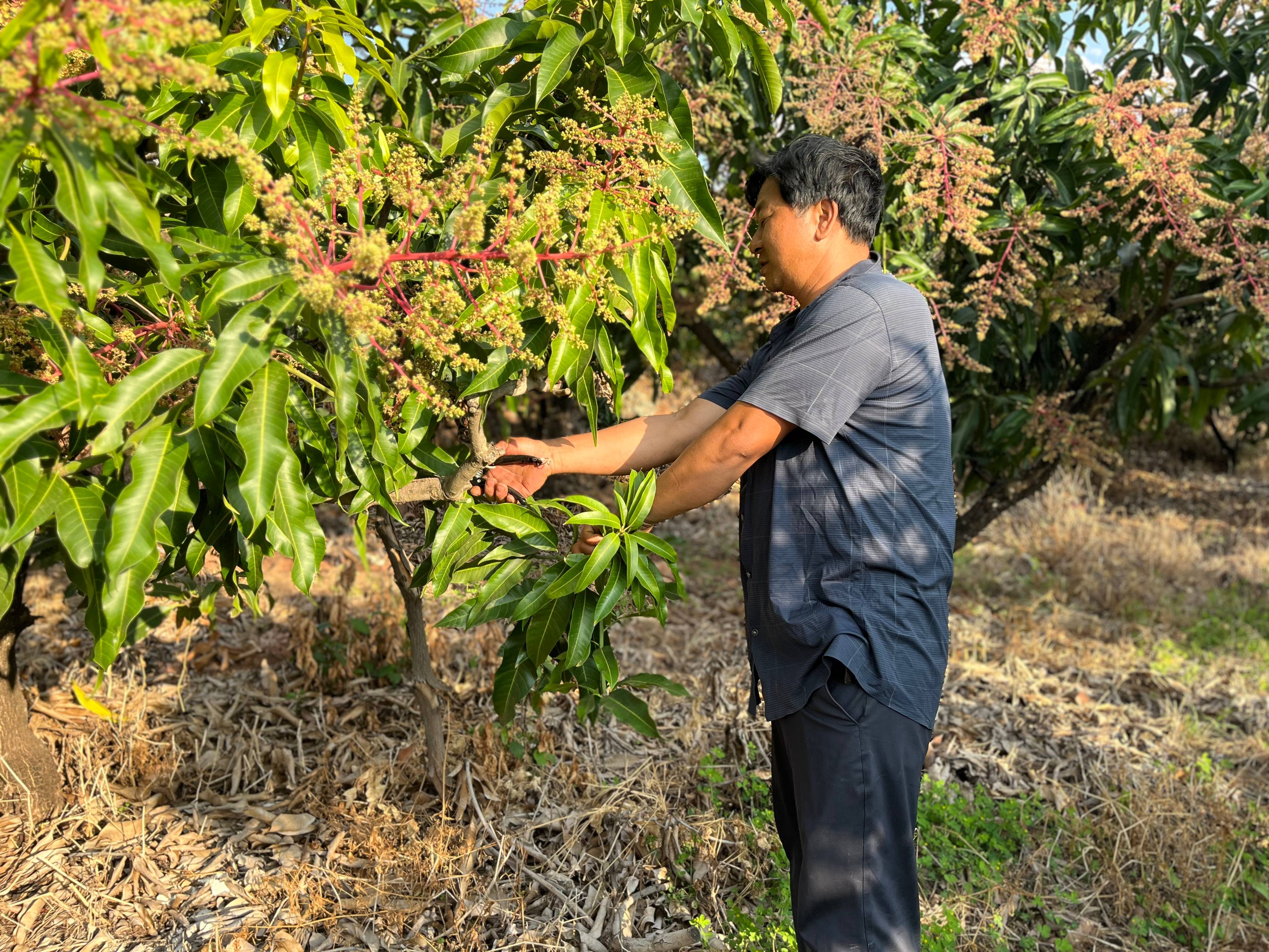 “咔嚓”“咔嚓”,随着枝剪的挥舞,一株株开满花穗的枝条应声落地。“现在正是芒果的管护期,我们要做的就是修枝、压花、浇水、追肥,保证果树营养充足,挂果率才高。”点连村党总支书记靳理成说。