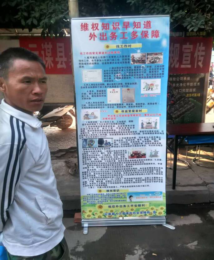 近日,为切实增强外出务工人员的法制观念和维权意识,元谋县人力资源和社会保障局组织开展形式多样的法制宣传教育,劳动保障监察大队积极对外出务工人员进行法律知识普及。