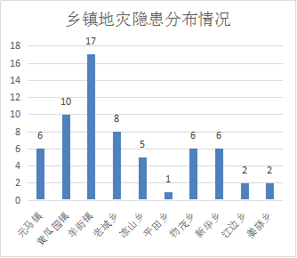 根据排查、核查成果以及各乡镇上报情况,2023年列入监测范围的地质灾害隐患点共63个,同比增加3%,其中:按地质灾害类型划分:滑坡37个,崩塌7个,泥石流19个。按乡镇划分:元马镇6个点,黄瓜园镇10个点,羊街镇17个点,老城乡8个点,新华乡6个点,平田乡1个点,物茂乡6个点,凉山乡5个点,江边乡2个点,姜驿乡2个点。地质灾害共威胁4194户、15639人、10.2632亿元生命财产的安全,落实地质灾害隐患点监测人员144人。
