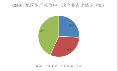 第一、第二、第三产业增加值占生产总值的比重为25.9:31:43.1,按常住人口计算的人均GDP为47459元,比上年增长9.9%,按目前汇率(1美元= 6.4721人民币)折算折合7333美元。非公有制经济增加值478312万元,占GDP的比重为49.8%,按可比价计算,比上年同期增长10.4%。