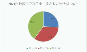 第一、第二、第三产业增加值占生产总值的比重为25.8:34.3:39.9,按常住人口计算的人均GDP为57638元,比上年增长15%,按目前汇率(1美元= 6.3543人民币)折算折合9071美元。非公有制经济增加值583160万元,占GDP的比重为50.5%,按可比价计算,比上年同期增长15.3%。