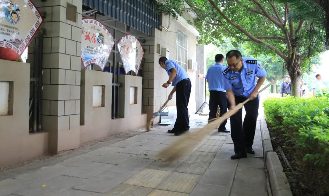 二是强化措施的落实,按照“党政主导、领导挂帅、部门包保、全民参与、综合整治、长效管理”的要求和“社区吹哨,单位报到”的方式,组织全局民警、辅警对本局卫生网格进行卫生整治,每周星期一组织开展单位室内外环境卫生大扫除,以及所负责街道环境卫生清扫保洁,落实“街长制”责任。每月最后一个星期五统一开展人居环境整治卫生洁净日活动,积极参与爱国卫生大扫除活动,持续推进“门前五包”,形成常态化。