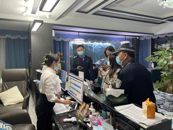 此次联合检查的重点是公共场所疫情防控措施的落实情况。专项检查组成员每分工协作、各司其职,每到一家公共场认真认真全方位开展督查,对从业人员健康证是否过期、消毒登记是否及时完整、是否设置体温监测点、从业人员健康监测记录、入住人员体温登记、工作人员对红黄码及发热应急处置流程、从业人员掌握消毒操作规程、洗手设施的配套、公共厕所的达标等各方面进行全面详细的检查督导。对发现做得不到位的地方当面向单位负责人提出,指导其及时改进,对违反公共场所监督法规的该处罚的决不手软,并督促其立即整改,且加强后续督导。