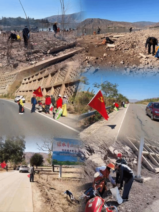 元谋县红军长征纪念馆位于元谋县江边乡龙街渡,是全国100个红色经典景区景点之一,也是楚雄州爱国主义教育基地。金沙江乌东德水电站建设后,金沙江江边段形成3万平方米的巨大湖面,无论是文化底蕴还是湖光山色都让江边成为春节出游的热门选择。但不少人在尽情游玩的同时却忽略了爱护环境,在景区留下了许多垃圾。春节假期结束后,江边乡以“学党史、悟思想、办实事、开新局”为主线开展主题党日活动,把主题党日活动作为拓展延伸“我为群众办实事”的重要载体,开展志愿共建环境清理活动,组织乡机关、龙街、大树、盐水井100余名党员及志愿者对金沙湖景区及红色旅游公路沿路的垃圾进行了清理整治。