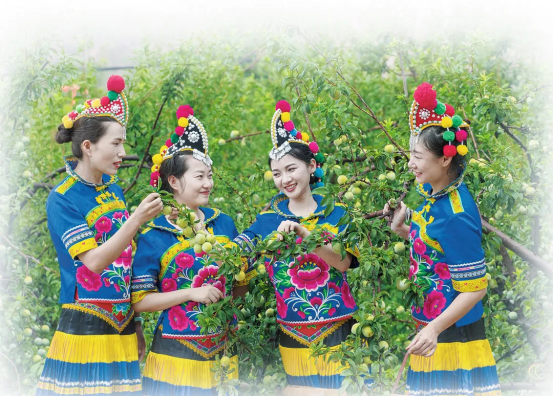 “春风吹绿了山野,桃子嫁给了李子,新华桃李甜如蜜,我在新华等着你……”优美的歌声在村庄回荡,累累硕果挂满枝头,20.9万亩山林郁郁葱葱,梦幻土林熠熠生辉,各族群众生活富足、笑靥如花,这里就是被誉为“绿色康养之乡、特色桃李之乡、生态养殖基地”的元谋县新华乡。