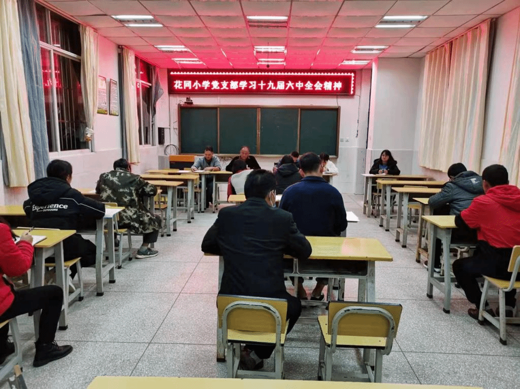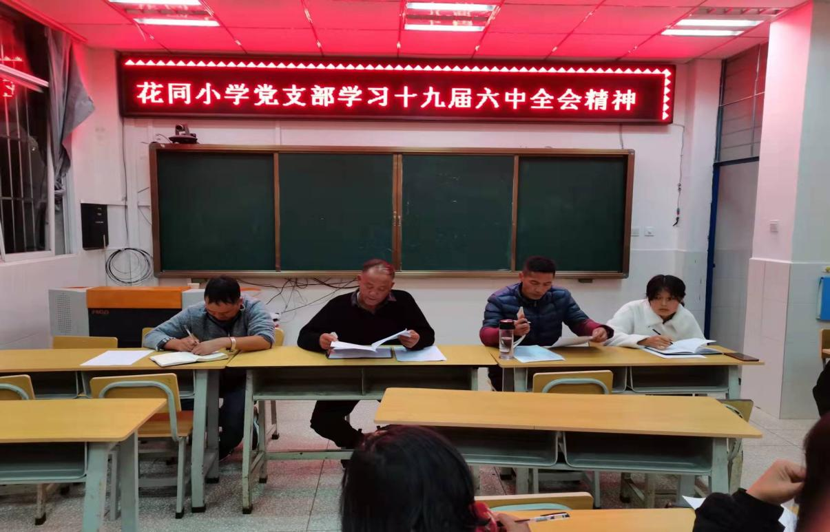 2021年11月28日晚,花同小学党支部组织学习全体教职工对党的十九届六中全会精神进行了专题学习,并对如何做好全会精神宣传工作进行了具体安排。