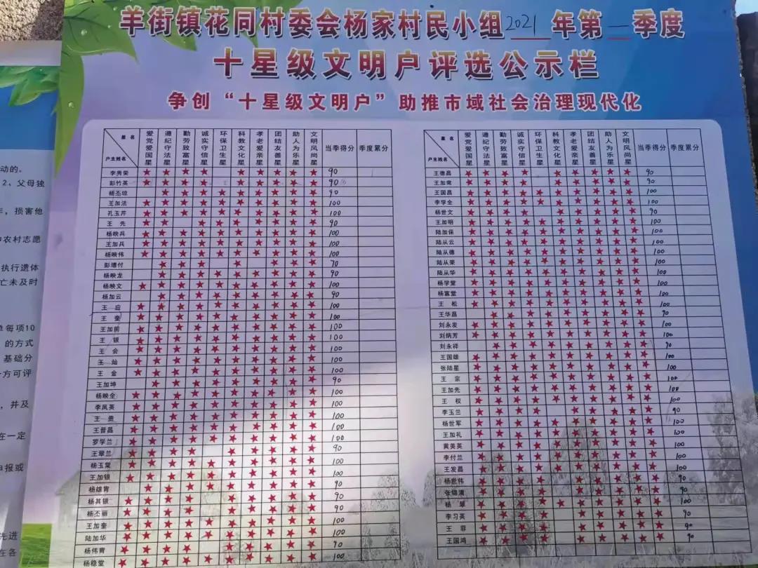 按照自我管理、自我教育、自我服务、自我约束的自治原则,制定《羊街镇村规民约正负清单积分奖惩运行办法(试行)》,全面推行“一约四会”制度,建立提醒警醒、罚金惩处、限期整改、法律法规责任追究“四项制度”,结合“十星级文明户”评选,以户为单位开展“月评议、季评比、年评定”,并将结果公开公示,基层群众广泛参与基层治理的积极性得到有效提升,形成了群众邻里比拼监督、鼓励先进、鞭策后进的良好氛围,全镇社会治理质量不断提高。羊街镇先后被命名为“省级文明乡镇、省级卫生乡镇、省级生态乡镇和州级民族团结进步示范乡镇”,甸头村和下百邑村被授予“省级文明村”,下百邑村和依洒彝村被命名为“省级卫生村”,高姑和平安2个村委会被评定为国家森林乡村。
