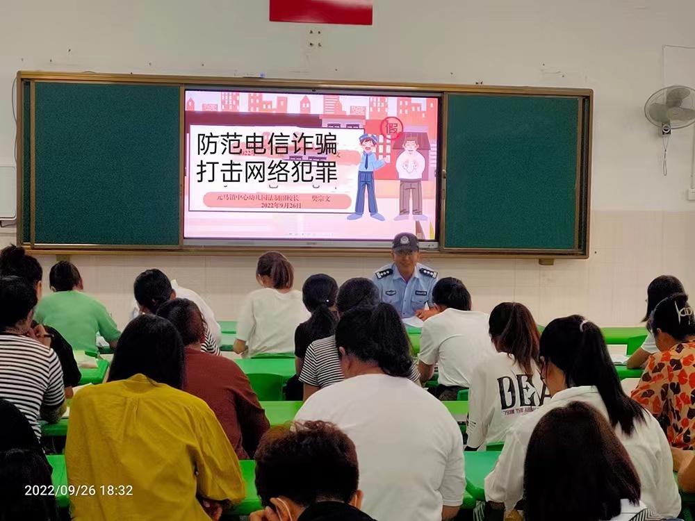 防电信诈骗培训。列举了常见电信网络诈骗的类型,提醒师生、家长保持警惕,不随意泄露身份证件、银行卡等重要信息,提高识骗、防骗能力。一旦受骗,及时拨打110报警或96110全国反诈骗专线进行咨询,提高应对骗局的能力。