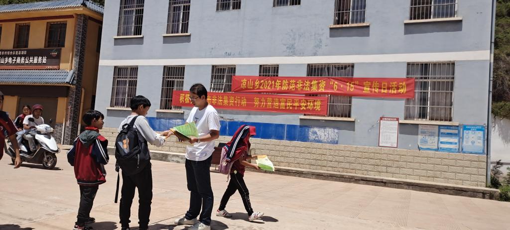 为提升凉山乡群众防范非法集资的能力,增强风险防范意识,引导群众远离非法集资,自觉抵制非法集资。近日,凉山乡财政所依托新时代文明实践站平台,联合凉山派出所充分利用学校开学季,在全乡范围内开展了2021年“打击非法集资,营造富民平安”的宣传活动。