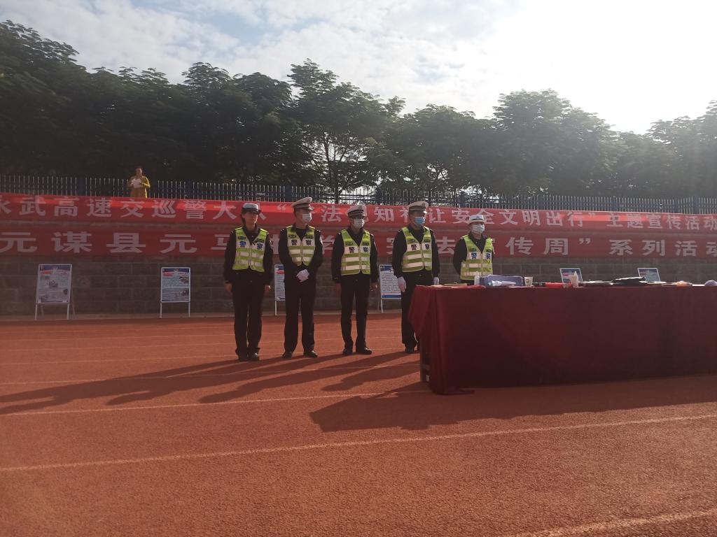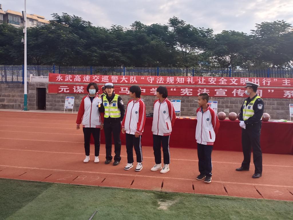 12月2日是第十个“全国交通安全日”,以此为契机,为了使全校师生进一步掌握交通法律法规知识,牢固树立交通安全意识,提高自我防范能力。元马中学邀请永武高速路交巡警大队开展“守法规知礼让安全文明出行”系列安全教育活动,全方位提高师生的交通安全意识。