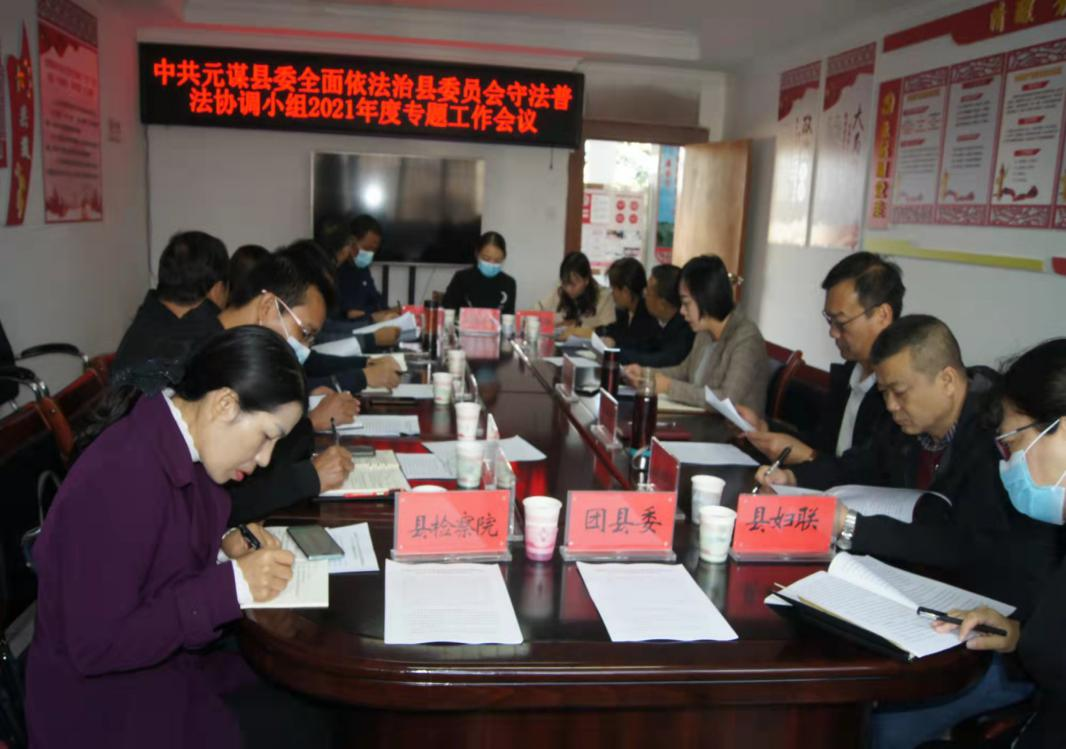2021年11月11日上午8:30时,中共元谋县委全面依法治县委员会守法普法协调小组召开2021年度专题工作会议。守法普法协调小组组长、副组长、联络员及成员单位分管领导参加会议。