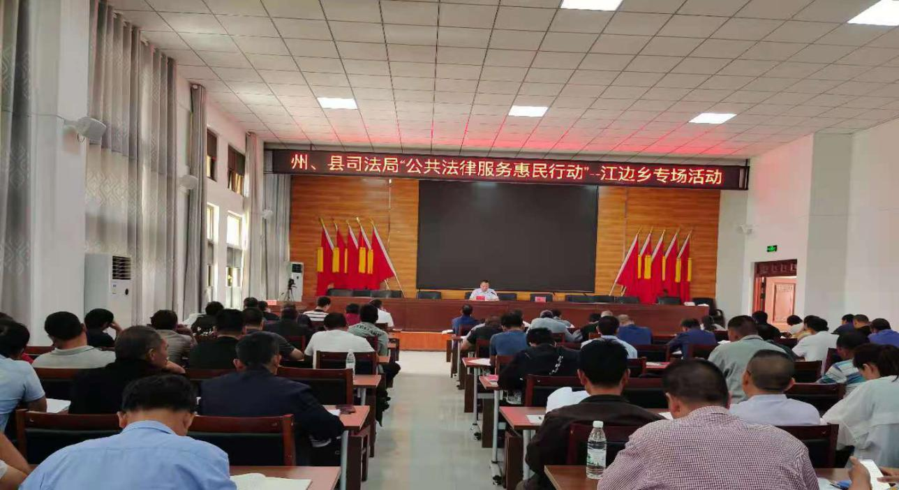 为充分发挥“公共法律服务惠民行动”在乡村振兴工作中的推动作用,提升人民群众学法、守法、用法意识和法治素养。6月9日,楚雄州司法局、云南楚恒律师事务所及元谋县司法局组建法律服务团队深入江边乡开展“我为群众办实事”及“公共法律服务惠民行动”专场活动。活动以法律讲堂的形式开展,江边乡共120名村组干部参加了学习。