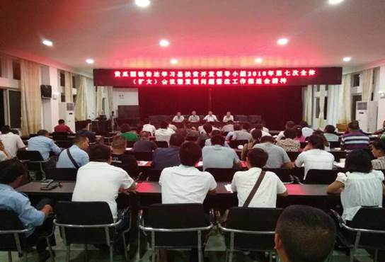 黄瓜园镇于2018年7月2日晚8点,组织召开专题会议,传达学习县扶贫开发领导小组2018年第七次全体扩大会议暨发现问题整改工作推进会精神。镇机关干部职工、各村委会书记主任及驻村工作队员参加了会议。