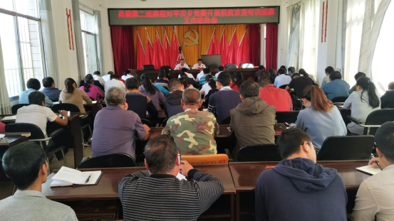 根据县委统一部署,2018年10月15日,县委第二巡察组进驻平田乡开展巡察工作,对平田乡党委开展第七轮巡察暨脱贫攻坚专项,当天下午,在平田乡召开了县委第二巡察组对平田乡党委开展脱贫攻坚专项巡察工作动员会,平田乡全体干部职工,各村委会三职干部及近三年退休人员共76人参加了会议。