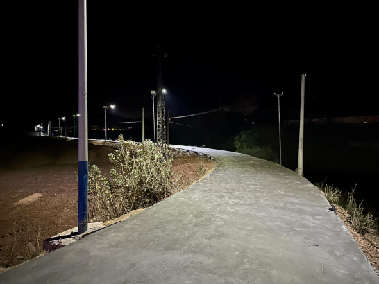 物茂乡永定河小物茂村至普龙村段沿河道路,是2018年河道治理修建的土路,是集镇区唯一一条休闲步行路,群众很喜欢来到这里休闲放松。几年过去,道路失修坑洼不平,没有路灯漆黑一片,晴天一身灰,雨天一身泥,给群众出行带来不便。今年,物茂乡在积极向上级争取项目资金的同时,结合自筹资金等方式,对这条路实施硬化升级改造,共计硬化道路长586米,宽3.3米,安装路灯18盏,使得村容村貌焕然一新。