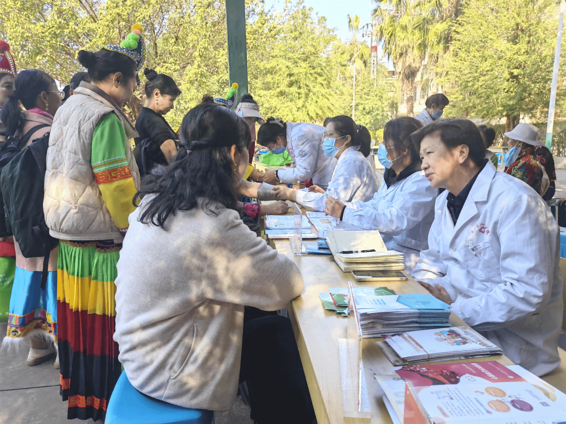 各医疗机构医务人员充分发挥专业优势,热心为群众提供多元的健康服务。县人民医院为群众进行健康义诊,专业心理咨询师一对一疏导化解群众心结;县中医医院现场展示针灸、推拿、穴位贴敷等中医适宜技术,让群众亲身体验传统医学魅力;黄瓜园镇中心卫生院免费为群众健康体检,细致排查健康隐患;县疾控中心通过发放宣传资料、现场讲解等方式,普及疾病预防知识和健康生活方式。丰富的服务内容吸引了大批群众参与,卫健系统服务场地成为全场人气最旺、反响最热烈的区域,前来咨询问诊的群众络绎不绝。不少群众表示,在家门口就能享受到县级医院的优质医疗服务,既方便又暖心。