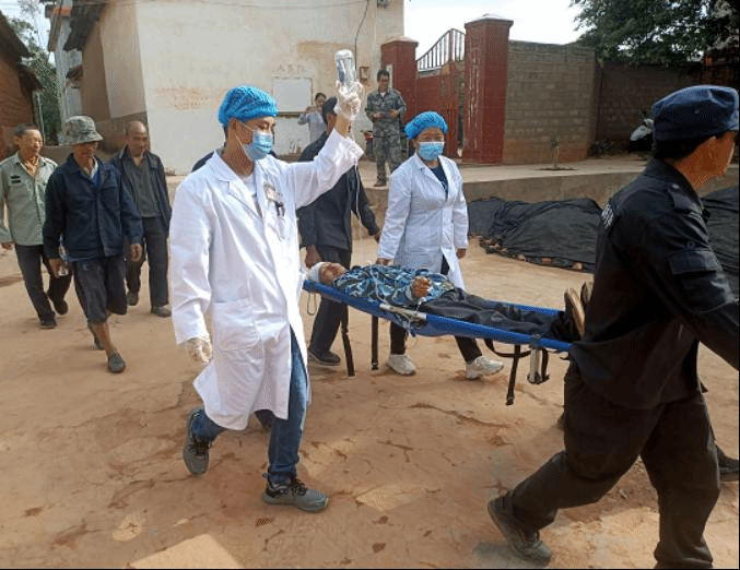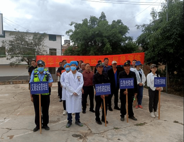 上午8点,乡应急抢险队、派出所、乡卫生院、乡自然资源所及当地村组干部和群众在团坝村球场集结,开展应急演练动员。动员结束后,团坝村应急演练正式开始。