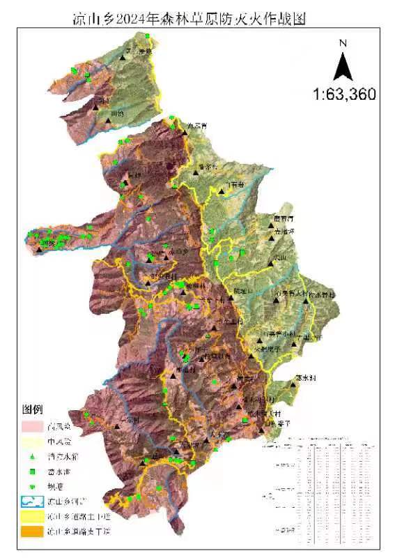 底数摸清,落实防火责任。通过制作《凉山乡2024年森林草原防灭火作战图》,对全乡区域进行风险红蓝图标绘,以及水网、路网、水池、坝塘等标绘,对全乡地形地貌、重点区域做到心中有数。同时,按照《凉山乡森林草原防灭火包保责任制实施方案》进一步强化责任落实,要求4个村委会、35个村民小组认清防火严峻形势,督促村、组干部履行职责,对摸排出的163户放牧人员、14个生产经营单位、21名五类人员进行相关责任书的签订,进一步加强对重点人员的管理。