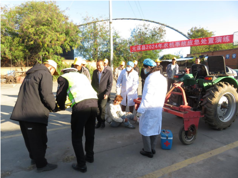 12月3日9时10分,随着指挥长一声号令,元谋县2024年农机事故应急处置演练拉开了序幕。演练模拟元谋县三友农机公司培训驾校在组织学员开展拖拉机旋耕作业训练过程中,学员李某某在检查并调节旋耕机时,因操作不当被旋耕机刀片压伤划伤的农机事故应急处置。