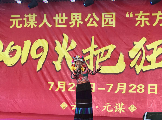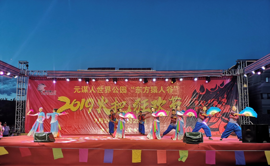 为迎接彝族火把节,展现民族传统节日魅力和浓郁的彝族风情,元谋县文化和旅游局非遗展演中心以文旅融合模式利用品牌节庆活动助推旅游文化产业发展,2019年7月27日至28日,该中心在元谋人世界公园开展了“2019元谋人•世界公园火把狂欢节”文艺演出。