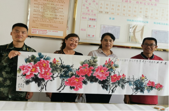 我县知名书画工作者挥毫泼墨,为战士们留下了一幅幅增添节日气氛的书画作品,受到战士们的热烈欢迎。