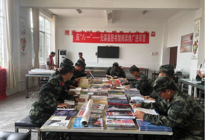 元谋县图书馆所带去的书籍既有紧贴官兵成长进步需求的红色书籍,也不乏军事、历史等文学类书籍,还有富有现代气息的养生、管理类图书以及陶情益智型的杂志、小说等,官兵们纷纷挑选自己喜爱的书籍翻阅。