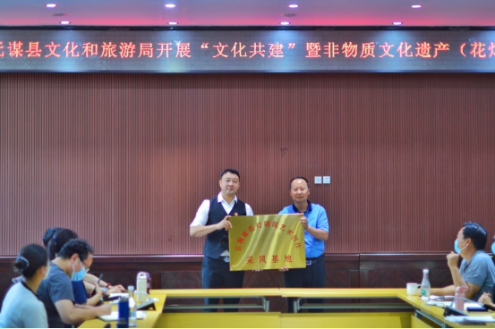 近日,云南省花灯剧院与元谋县文化和旅游局开展“文化共建”暨非物质文化遗产(花灯)传承基地签约授牌仪式。云南省花灯剧院、中共元谋县委宣传部、县文化和旅游局、县文化馆、县非遗展演中心等相关人员参加了此次活动。