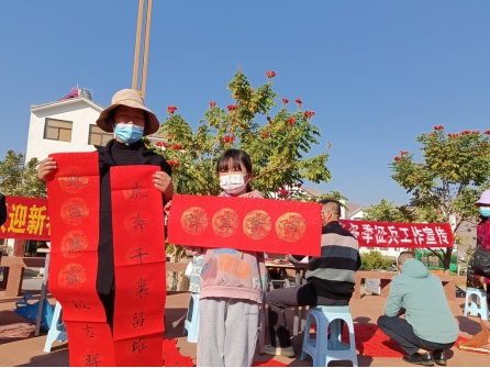 为深入学习宣传贯彻党的二十大精神,弘扬优秀传统文化,营造欢乐祥和、喜庆热闹、文明向上的春节氛围,进一步丰富人民群众的业余文化生活,促进诗歌艺术村文化事业繁荣发展,助推文艺文化赋能乡村振兴。切实把服务民生、文化惠民政策落到实处,让基层群众共享文化发展成果。1月12日,江边乡、县文联、县文旅局联合组织在新韵律诗歌小镇主会场“红色文化广场”举办2023年迎新春群众文化系列活动“我的中国梦-文化进万家”和“迎新春送春联”文化惠民活动。