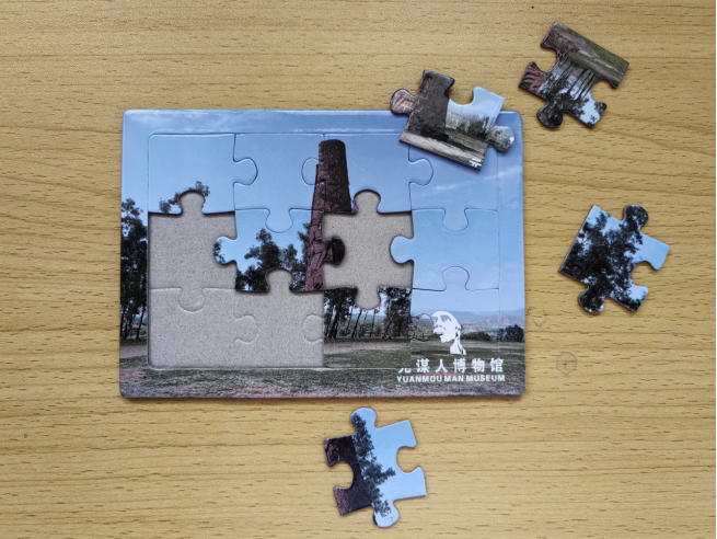 内容:游客到前厅报名参与活动由工作人员随机发放以元谋人博物馆标志物或元谋出土的文物为主题的定制拼图,由游客独立完成。完成后到展厅寻找相应文物与之合影并向工作人员介绍相关文物知识点,完成任务后可将拼图带走,作为元谋人博物馆之旅的独特记忆。(数量有限,先到先得)