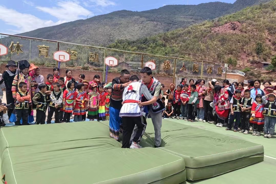近日,凉山乡团委联合乡非物质文化遗产传承人,在凉山小学开展非遗保护进校园活动,凉山乡州级彝族式摔跤传承人何建忠给学生面对面授课,讲解民族体育竞技文化,以及彝族摔跤的来历和摔跤的动作要领,受到广大师生的喜爱。