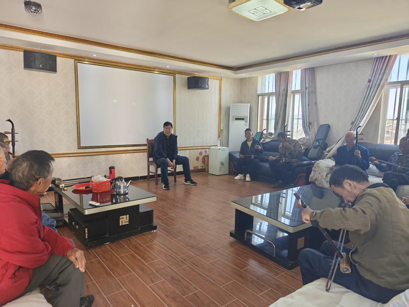 在另一边的乐器培训教室里,二胡的悠扬旋律不时传出。针对乡村文艺活动中乐器人才紧缺的状况,老师专门开设了二胡教学。从最基本的指法开始教起,让学员们感受手指在琴弦上的灵动变化,随后逐步深入到经典曲目演奏。老师们还精心挑选了花灯剧《开财门》《恭贺主人六位高升》中的二胡伴奏片段进行解析,让学员们了解传统乐器在民俗节庆中的多样应用,助力民乐从单纯的技艺传承迈向服务群众的转变。学员们纷纷表示,以前拉二胡总是不得要领,经过这次培训,感觉一下子打开了新世界的大门。