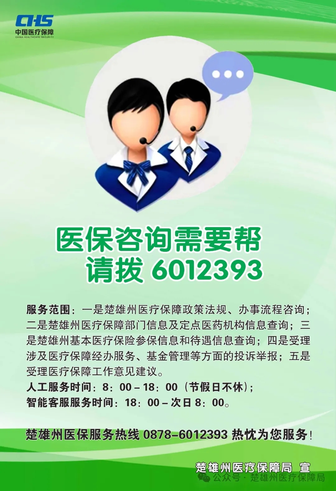 医保咨询需要帮,请拨6012393!楚雄州医保服务热线将热忱为您服务!