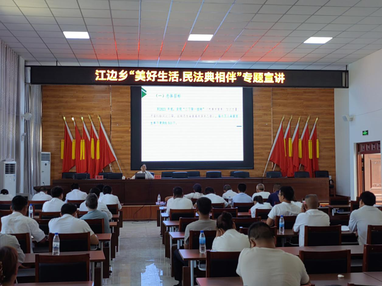 在“七一”建党节来临之际,江边乡利用举行庆祝中国共产党成立102周年暨江边乡“热坝先锋”表扬大会这一契机,结合正在开展的普法强基补短板专项行动,组织开展党员法治教育宣讲活动。江边司法所罗兴平所长围绕普法强基补短板专项行动,对《美好生活·民法典相伴》进行了专题宣讲。同时,组织参会人员收看法治宣传教育专题片《敬畏法律 珍爱生命》。