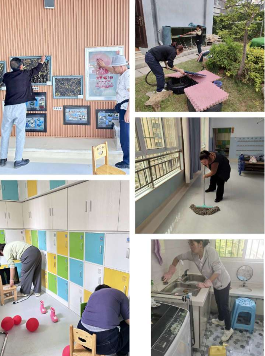 幼儿园里到处都是忙碌的身影,全园上下分工明确、配合默契,齐心协力为迎接宝贝们的到来而挥洒着汗水。只要与孩子们有关的地方,老师们无一不进行着彻底的大扫除,大消杀,力争为幼儿创造最美好的乐园。