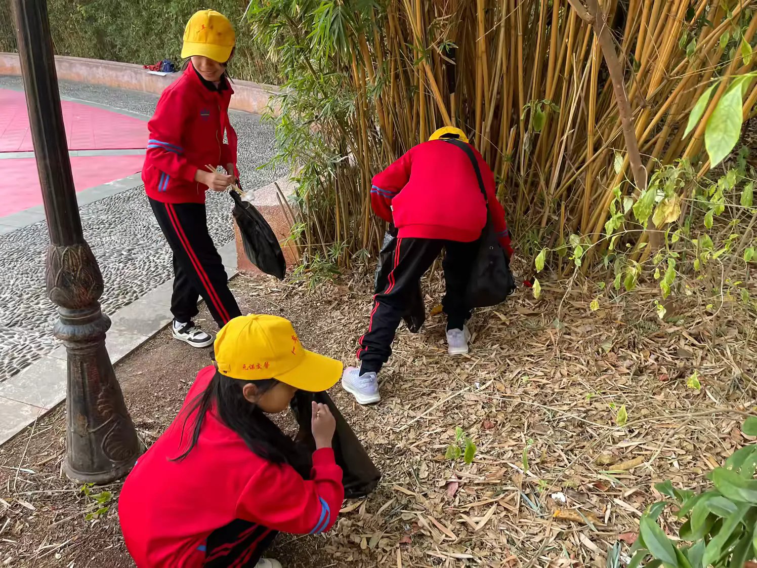 在辅导员老师安排下,同学们分组在公园里开始了环保清洁活动。他们弯腰捡起散落在地上的白色垃圾、烟头,并将它们放入手中的黑色塑料袋中。尽管志愿活动看似简单,但每个孩子都表现得非常认真负责。这样的行为不仅美化了环境,更重要的是教会了孩子们如何保护地球家园,成为真正的绿色使者。
