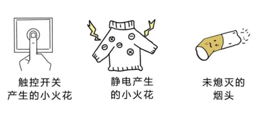 三是遇到引火源。当处于爆炸浓度范围内时,包括但不限于如下情形,都有可能引发爆炸。
